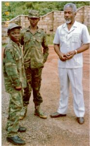 The soldiers accused Williams of being a rebel spy because he had come from a territory that was under rebel occupation. Williams was beaten and tortured by the government soldiers who did not believe the story he told of what he and his family experienced in the hands of the rebels. The following day, a senior commander arrived at the base and gave instructions for Williams to be transported to the military base in Tongo Field, which served as a sub-headquarters for government troops. Upon arrival, Williams was locked up in the guardroom for a week and then released, but instructed to stay on the military base. From then on, the government troops sent him on errands, such as fetching water and firewood for cooking, washing dishes, cleaning soldiers’ boots and washing their uniforms. As the RUF rebel forces intensified their attacks on the country from several fronts, the government troops were desperately searching for more manpower and they began to recruit many from the local community, including boys and girls. Williams and many other children underwent basic war training, which included the use of firearms and carrying out maneuvers during enemy attacks. Williams fought alongside the Sierra Leone government troops for two years.